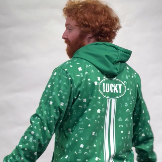 Lucky Hoodie | Men's Fleece Lined Pullover Hoodie with Luck from Horseshoes, Shamrocks, Shooting Stars