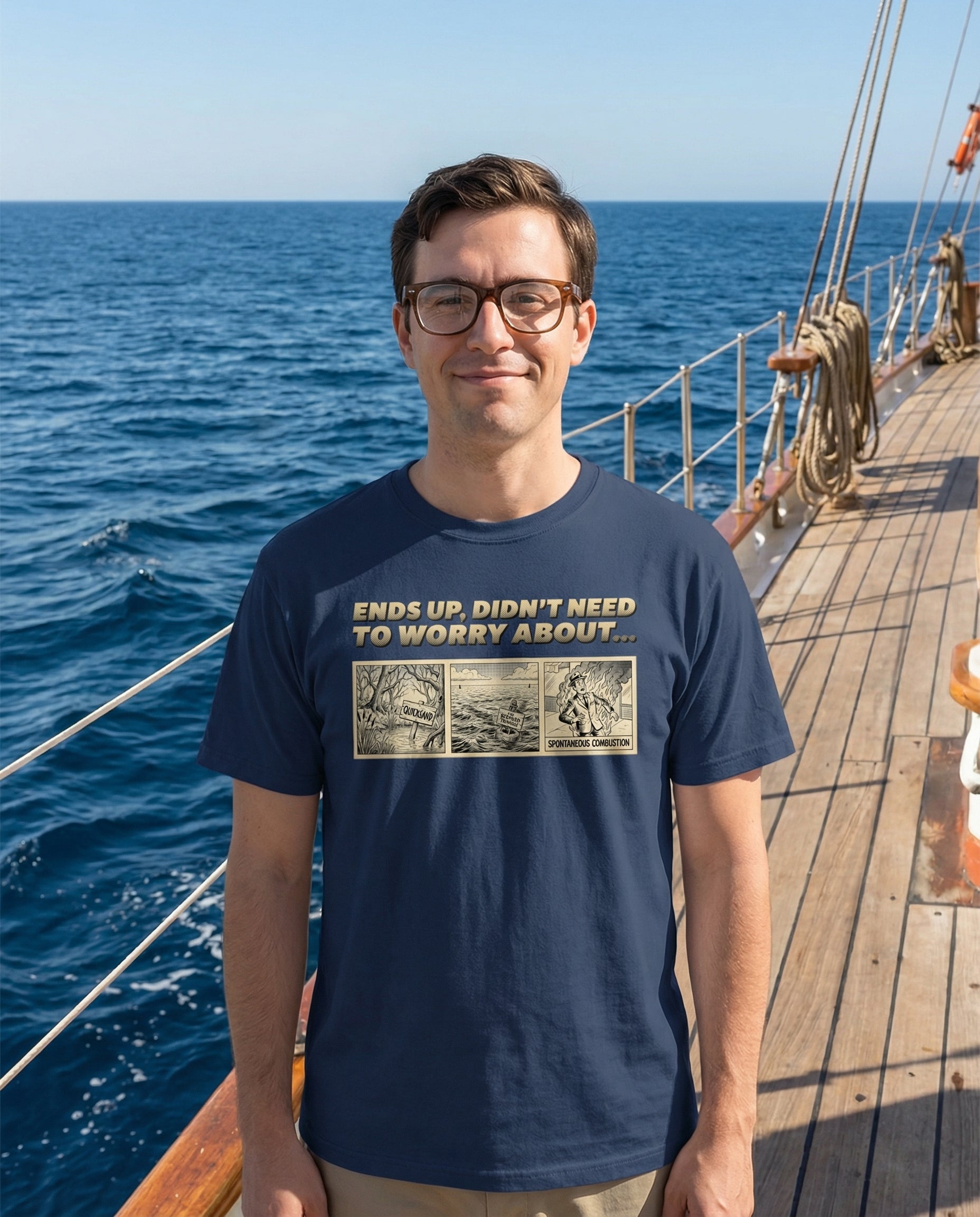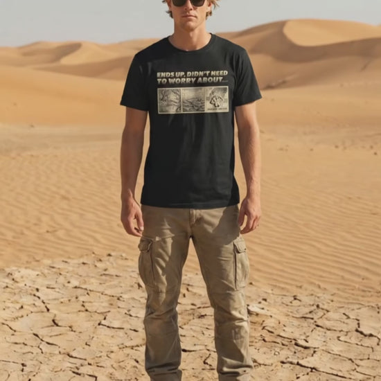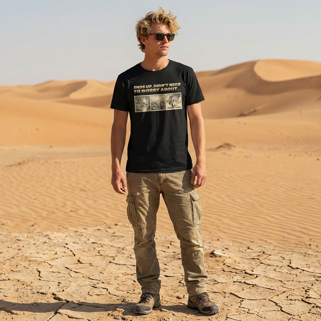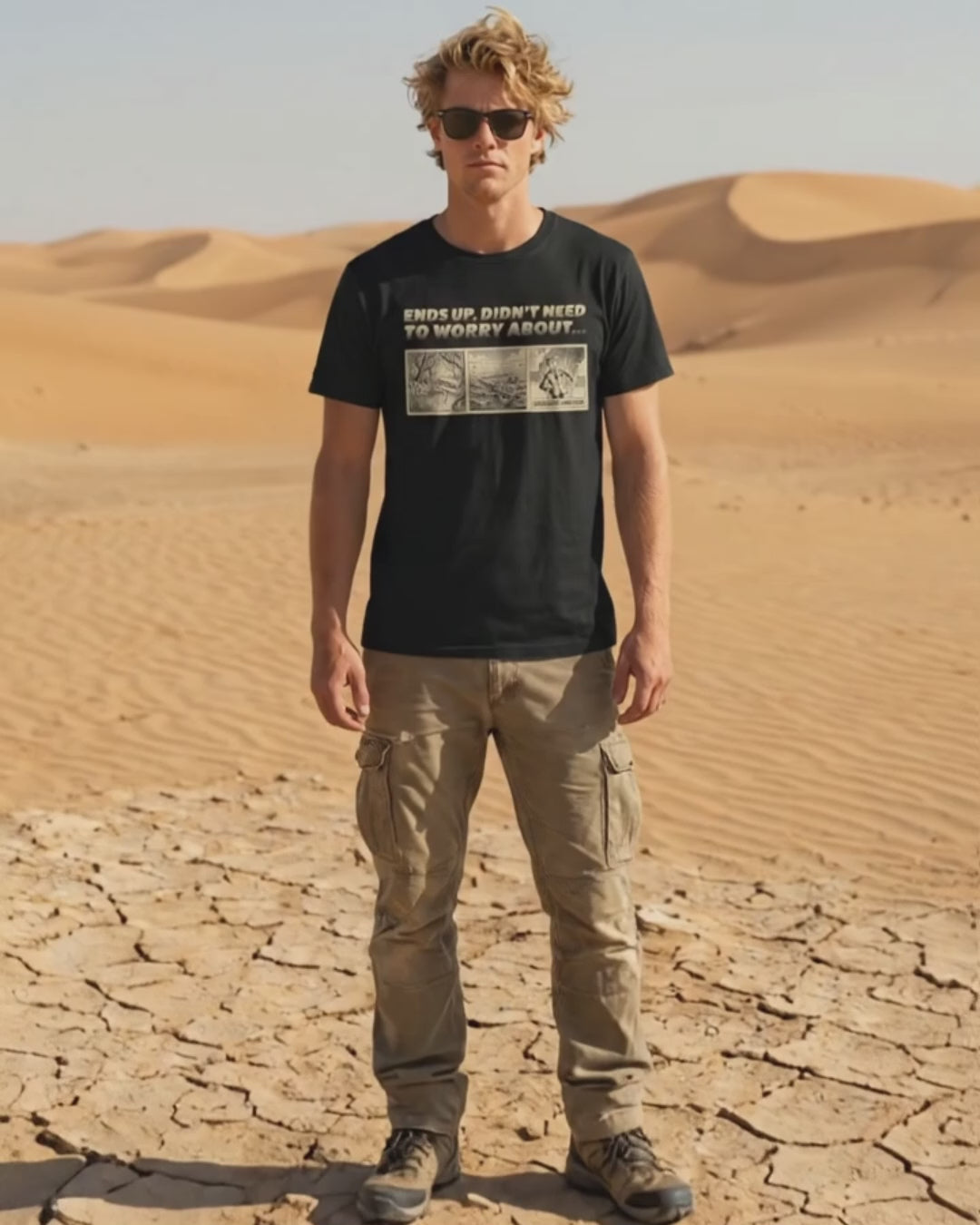 This shirt commemorates the magnificently overblown threats that dominated pop culture through our childhood. Designed in the style of a three-panel newspaper comic strip, complete with vintage halftone styling, it captures the absurd certainty we had that these dangers were lurking around every corner. Because nothing prepared you for adulthood quite like learning that quicksand appears in exactly zero percent of real-world scenarios.