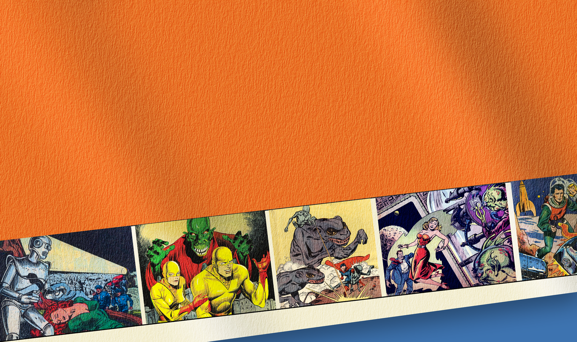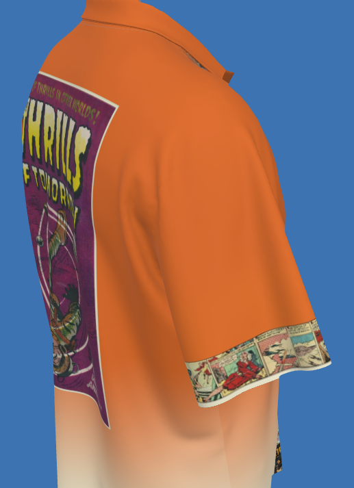 Classic Hawaiian shirt with a futuristic orange to cream gradient and a Roman collar. Comic book covers and panels are from pre-code science fiction titles from the 1940's and 1950's. This shirt is ideal for parties, your next comic convention, or clearing Mynocks off the hull of your starship.